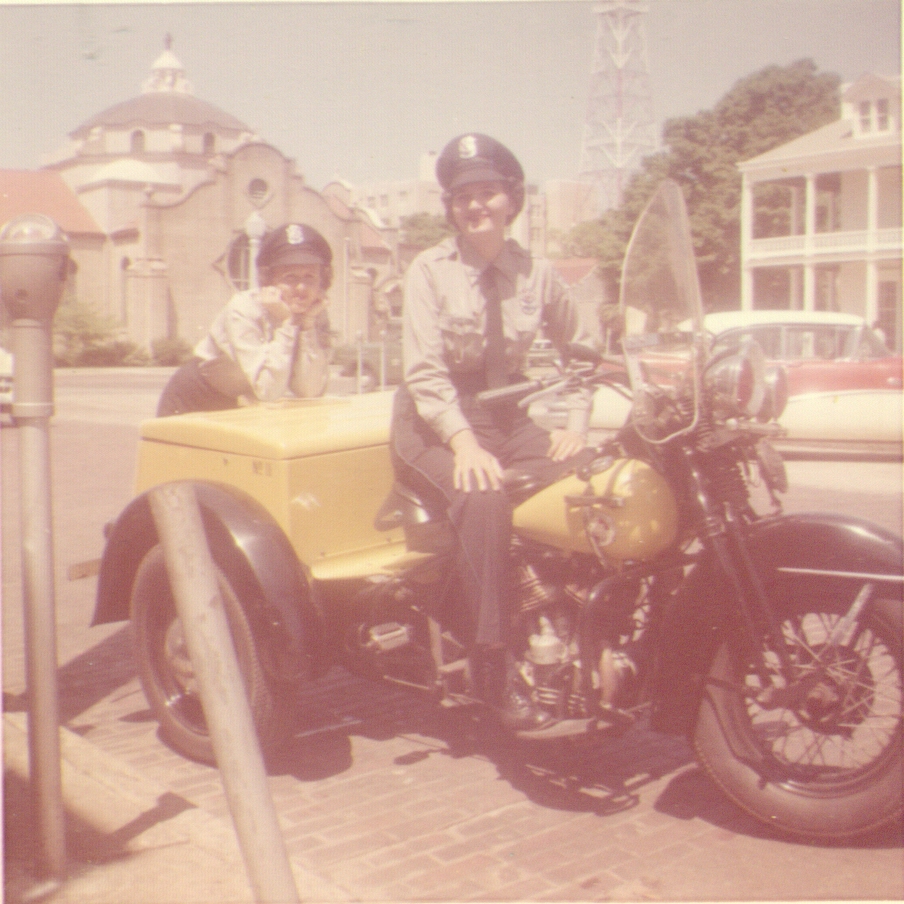 (Parking Enforcement Specialists (commonly called “Meter Maids,” on a department three-wheeler.