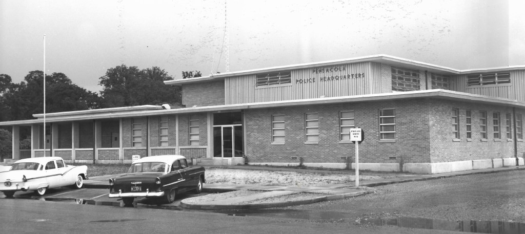 Under Chief Hall’s direction, many changes occurred. On August 5, 1956, the new police headquarters and jail were occupied and considered open for business. The location was 40 South Alcaniz Street on the south side of St. Michael’s Cemetery. The two-story building was described by the local news as a modern crime-fighting edifice, complete with a detective bureau, a records section, and an entire jail facility which included a kitchen for cooking meals for the inmates. The north end of the building was occupied by the U. S. Navy Shore Patrol.
