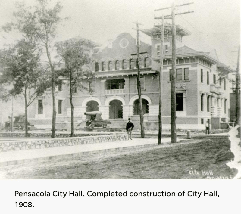 In 1907, the old city building was vacated, as the new city hall was ready for occupancy. For one year, the police department operated out of a small, nondescript building and the city offices were enjoying the new, large edifice. It was built for $8783.33. The city government remained in that location until it relocated to a new 10-story building at 222 West Main Street in 1985. In 1988, the T. T. Wentworth Florida State Museum opened in the old city hall building.