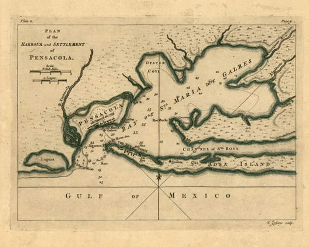 Montfort Browne was Irish, from Cornwall. He served with the 35th Regiment of Foot during the seven year’s war (1756-1763). His career was tarnished when he faced a court of inquiry which found against him in 1763. He found solace through an appointment as Lieutenant Governor of British West Florida. Upon his arrival in the capitol village of Pensacola, he began to have difficulties with Governor Johnstone, his immediate superior. Besides his increasingly strained relationship with his boss, he was investigated by British officials for unscrupulous bookkeeping irregularities.